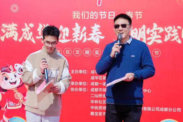 我们的节日·春节 | 福满成华迎新春 文明实践暖人心发表时间:2026-02-14 09:33 咚咚锵!咚咚锵!舞狮送福、歌舞贺岁、非遗添彩……2月11日下午,成华&成都铁建广场新时代文明实践186MALL(中国铁建广场)门口锣鼓喧天、人头攒动。“我们的节日·春节——‘福满成华迎新春 文明实践暖人心’”主题活动在此热闹举行。 本次活动由成华区精神文明建设办公室、成华区新时代文明实践中心主办,成都市城市道路桥梁监管服务中心、二仙桥街道新时代文明实践所、华林社区新时代文明实践站、中铁房地产集团城市运营管理有限公司成都分公司、蜀宝堂书法工作室协办。