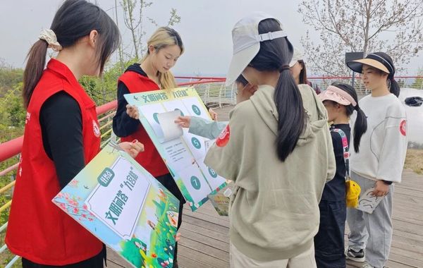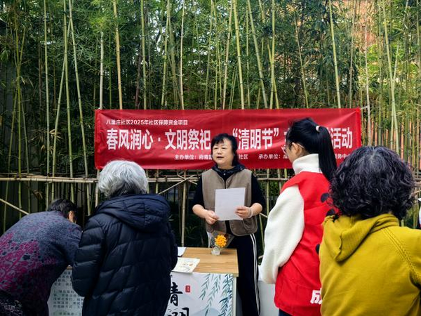 “丹景阁和玻璃栈道平时要收费,这次活动都给我们免了,带着孩子登高望远,春日美景尽收眼底。这趟来得真值!”一位家长满意地说道。 此次活动将传统习俗与文明实践有机结合,既让亲子家庭在踏青中感受春日的美好,也让文明祭扫、绿色环保的理念深入人心,使传统节日焕发出更具温度与内涵的时代光彩。 文明祭祀树新风 移风易俗入人心 清明追思,贵在心意;文明祭扫,重在践行。除了亲子踏青活动外,成华区各单位也纷纷行动起来,通过新风倡议、趣味问答、民俗体验等多种形式,引导居民摒弃旧习、低碳追思,让清明更显“气清景明”。